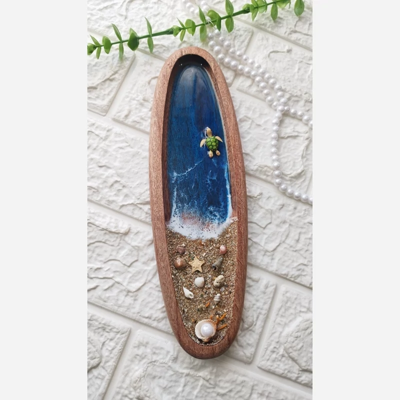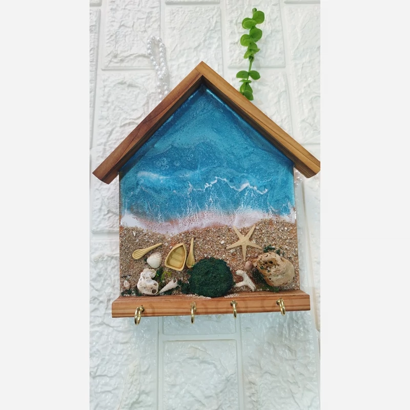 جاکلیدی دیواری چوب و رزین مدل کلبه ی دریایی
