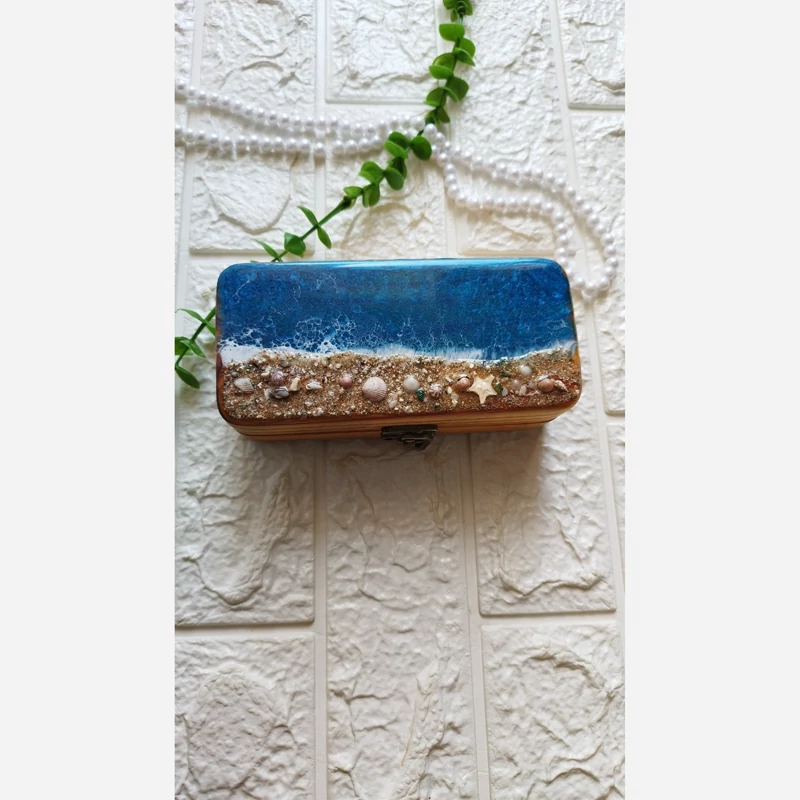 جعبه عینک دستساز چوب و رزین مدل دریای آبی