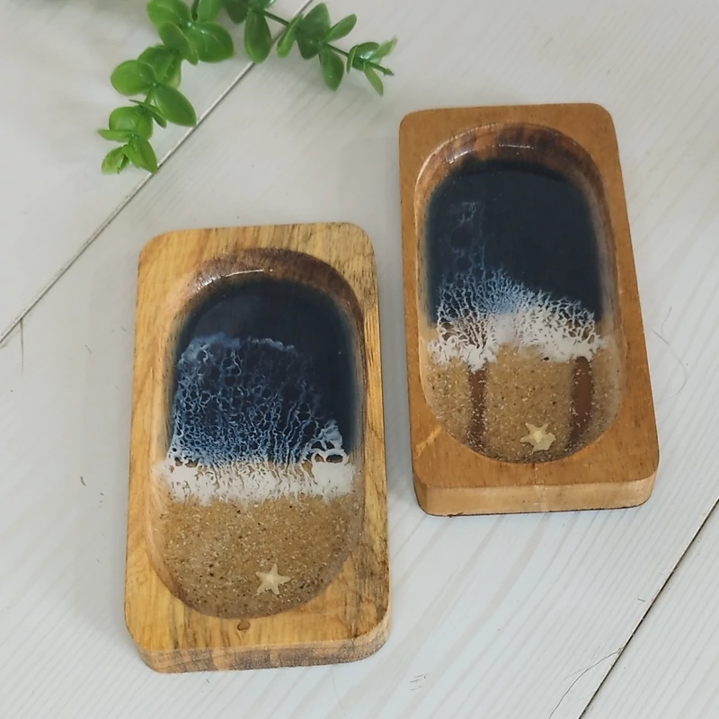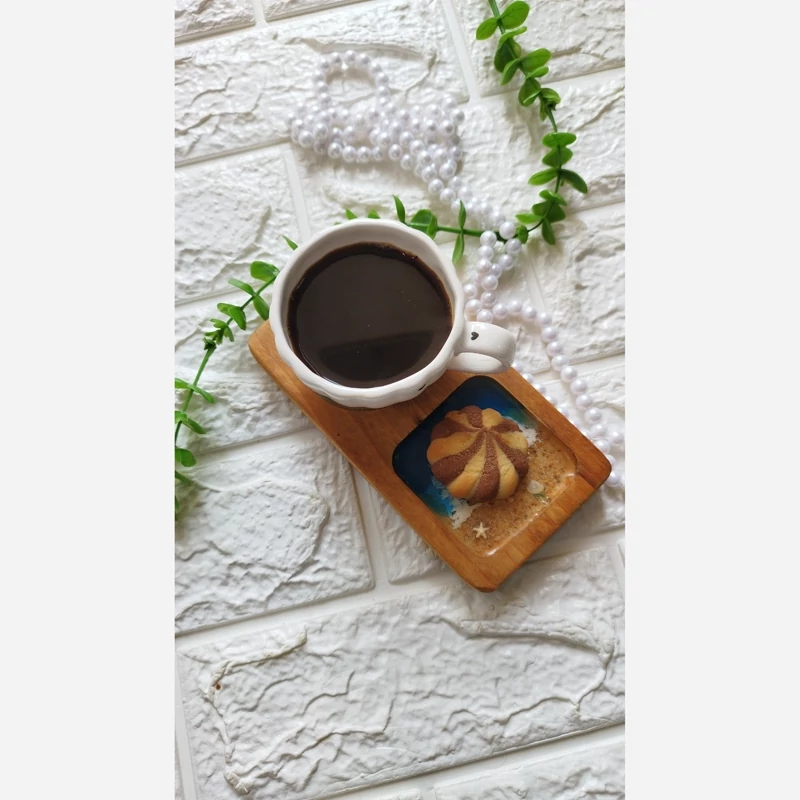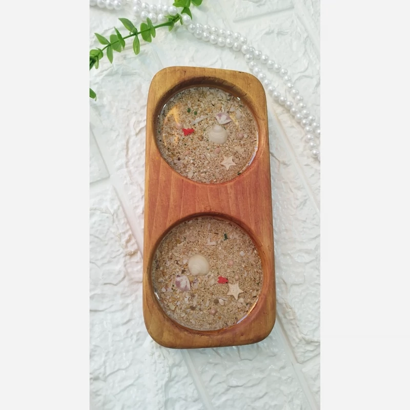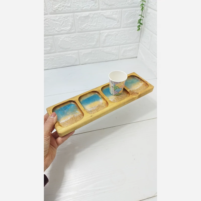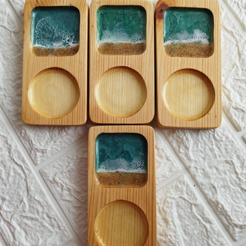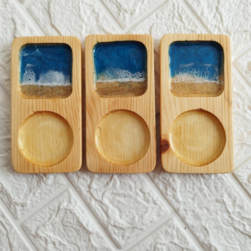 زیر لیوانی چوب و رزین مدل دریا رنگ آبی