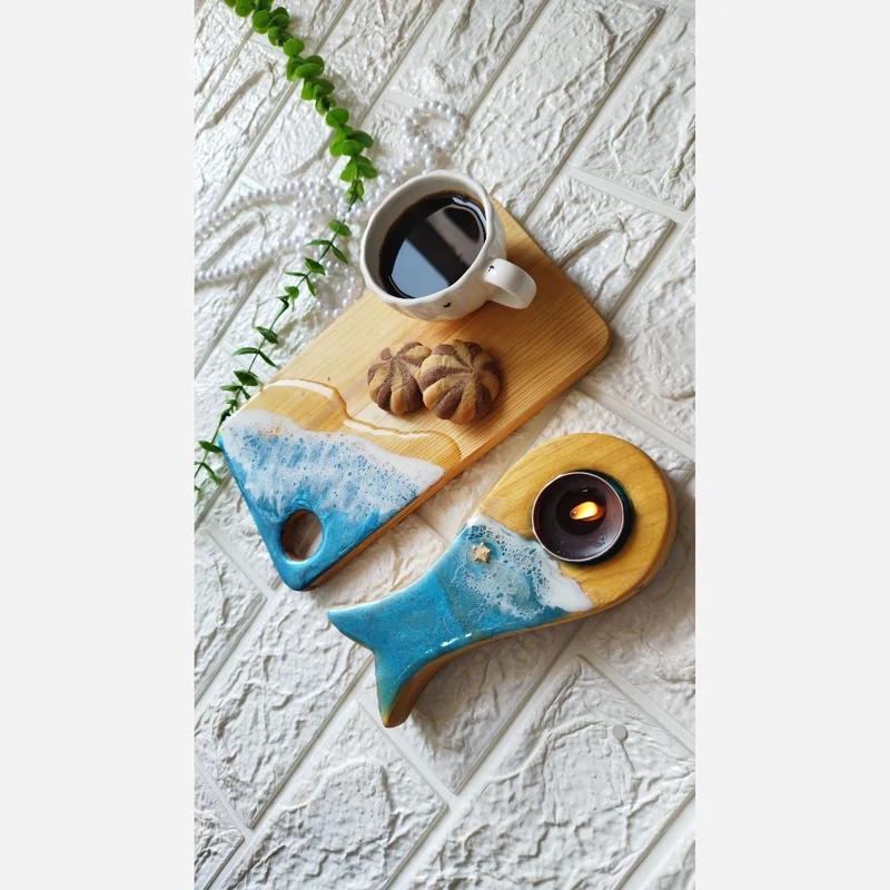 تخته سرو چوب طبیعی و رزین مدل دریایی