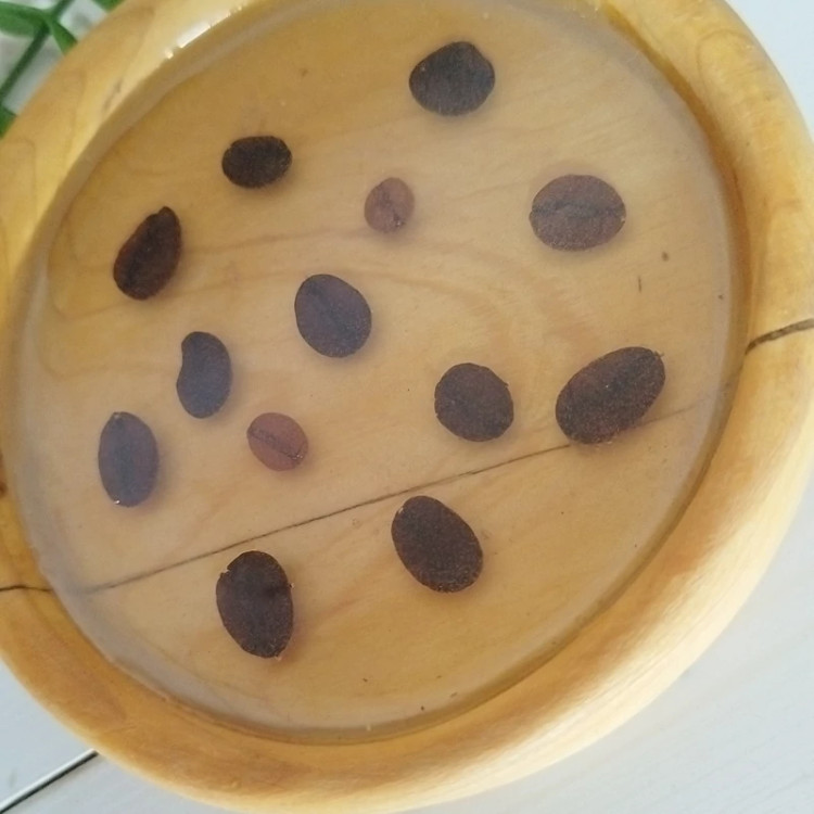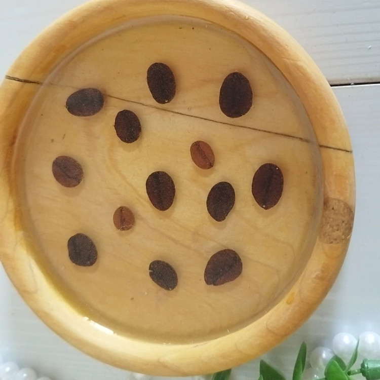 زیر سیگاری یا زیرلیوانی از جنس چوب طبیعی و رزین و دانه های طبیعی قهوه ساخته شده