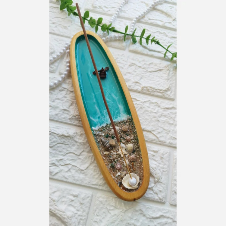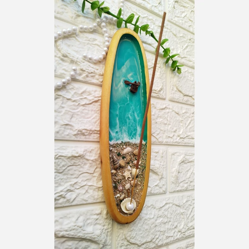 جاعودی چوب و رزین رنگ آبی فیروزه ای