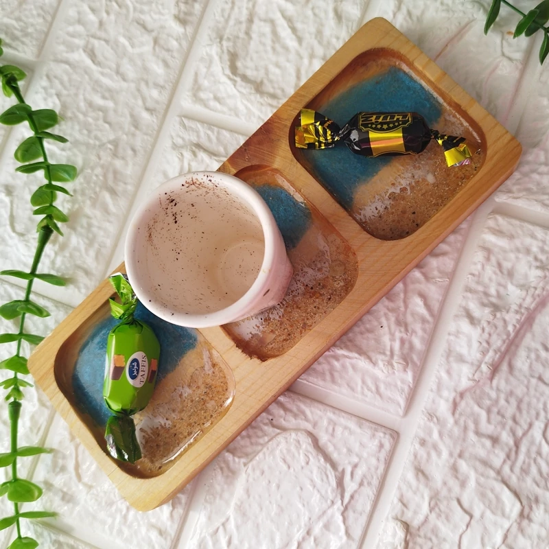 قهوه خوری چوب و رزین مدل 3 خانه رنگ آبی روشن