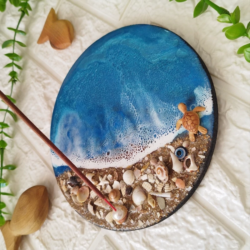 جاعودی رزینی طرح دریا کار شده با شن و صدف های طبیعی قطر حدودا 16 سانت