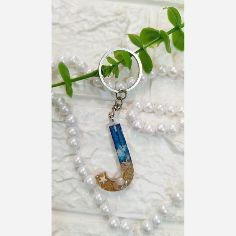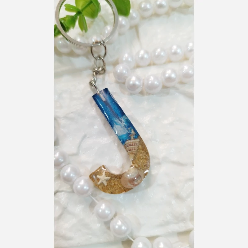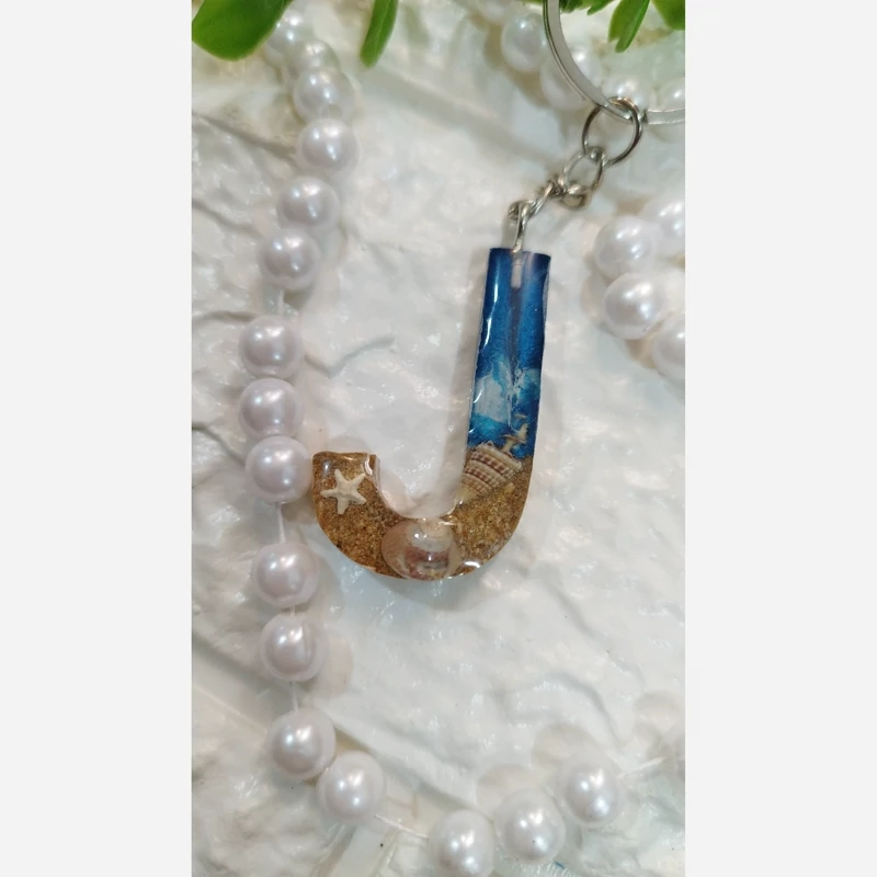 جاکلیدی حرف J تکنیک دریا شن طلایی و صدف های طبیعی حلقه استیل درجه یک