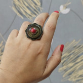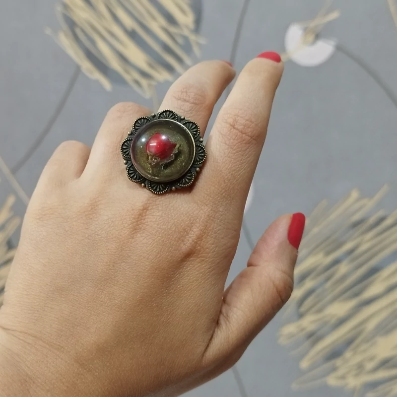 ست انگشتر و گردنبند مدل گل سرخ طبیعی قاب برنز