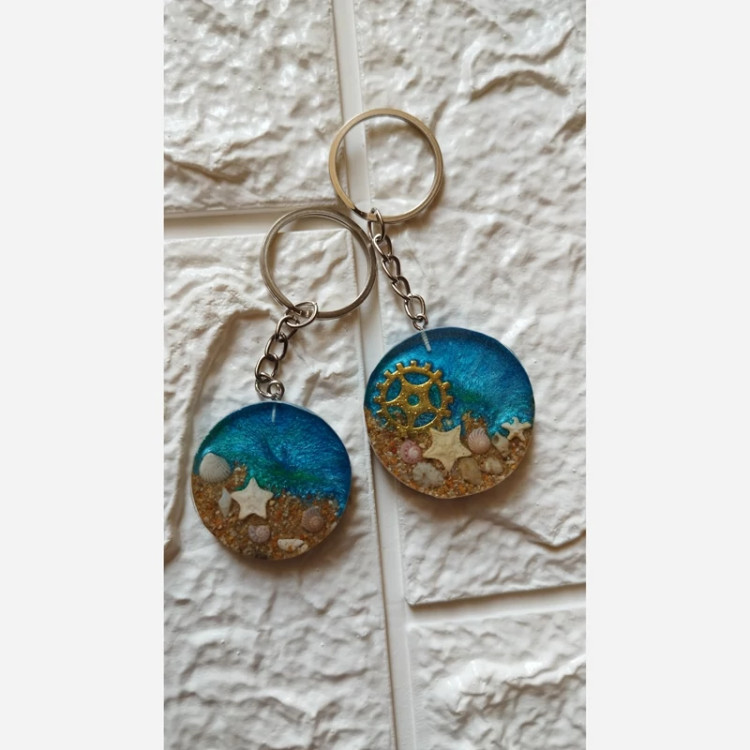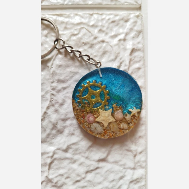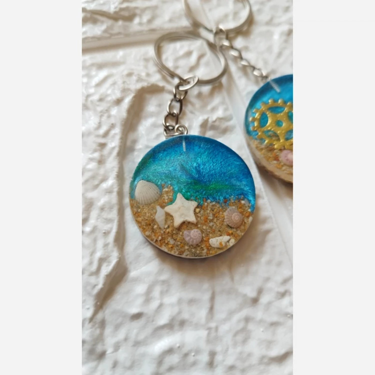 جاکلیدی رزینی طراحی خاص و منحصر بفرد با ستاره دریایی و صدف های طبیعی مینیاتوری❄️