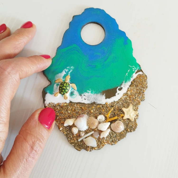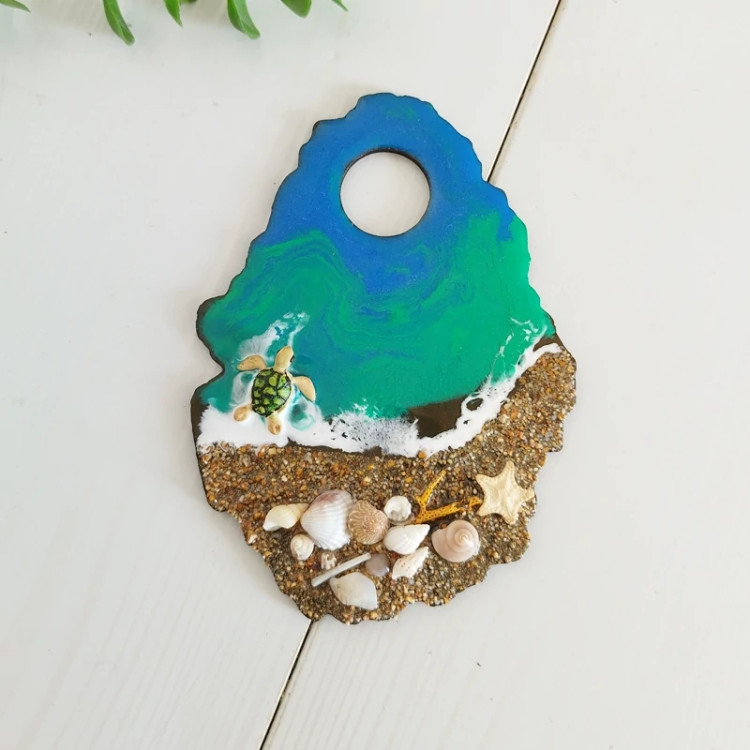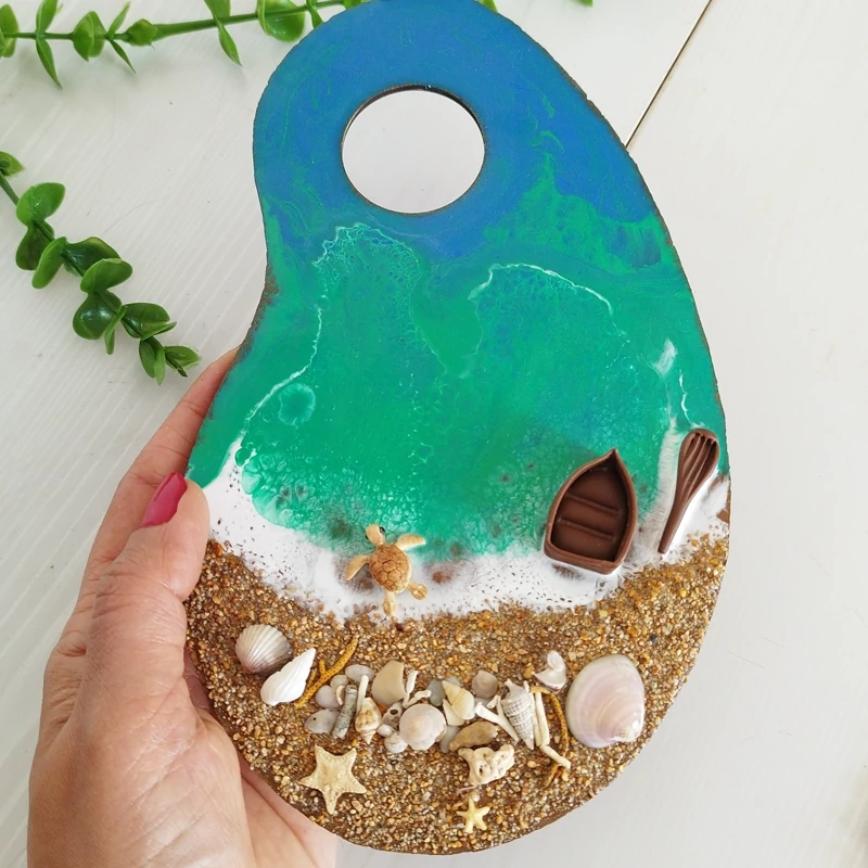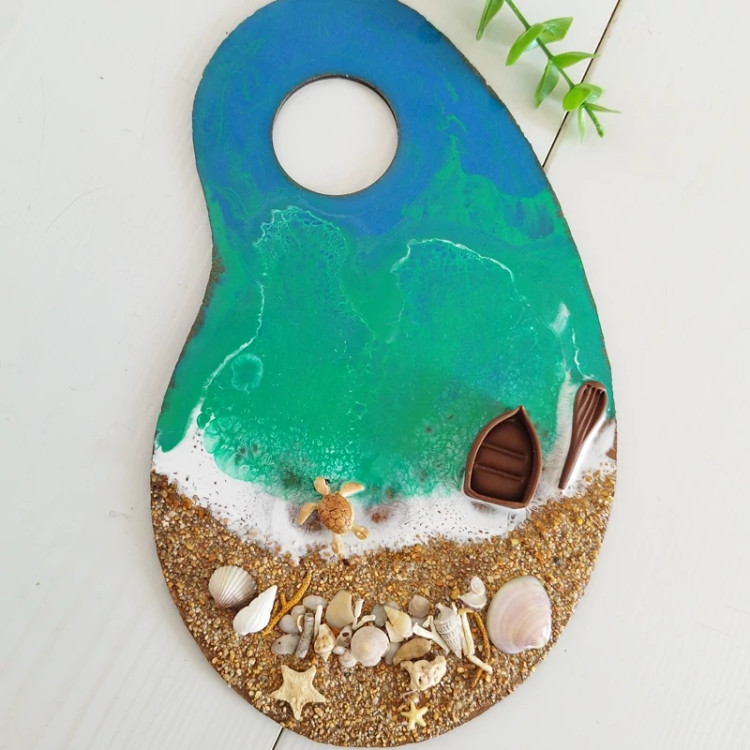 پالت ناخن و نقاشی رزینی طرح دریا