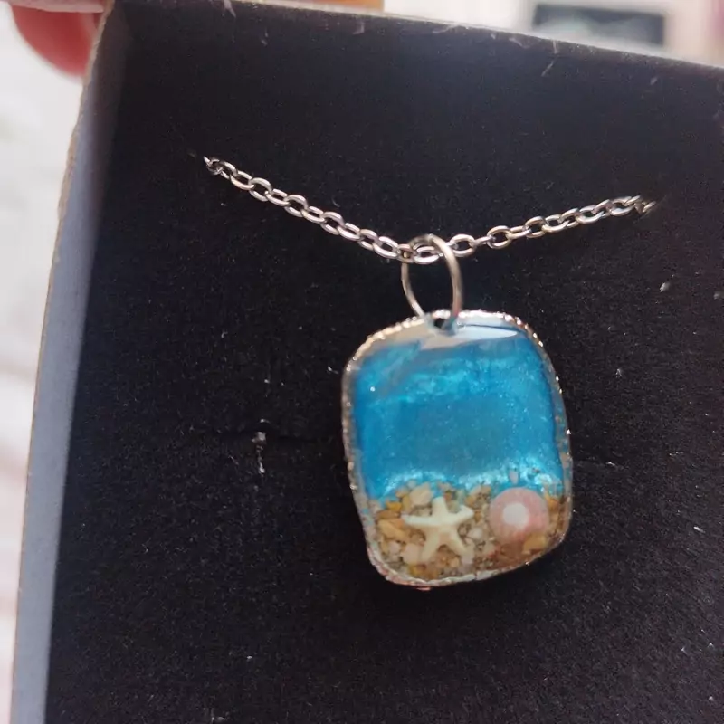 گردنبند رزینی طرحدریا دستساز قابل شستشو و بسیار سبک استیل رنگ ثابت و باکیفیت زنجیر استیل رنگ ثابت و 45 سانتی فوق العاده شیک برای هدیه دادن و عیدی دادن